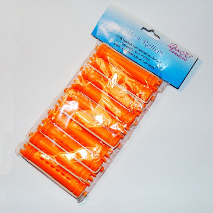 Бігуді-кожушки для завивання волосся жовтогарячі 12 х 90 мм, 10 шт. у пакованні "ДенІС professional"